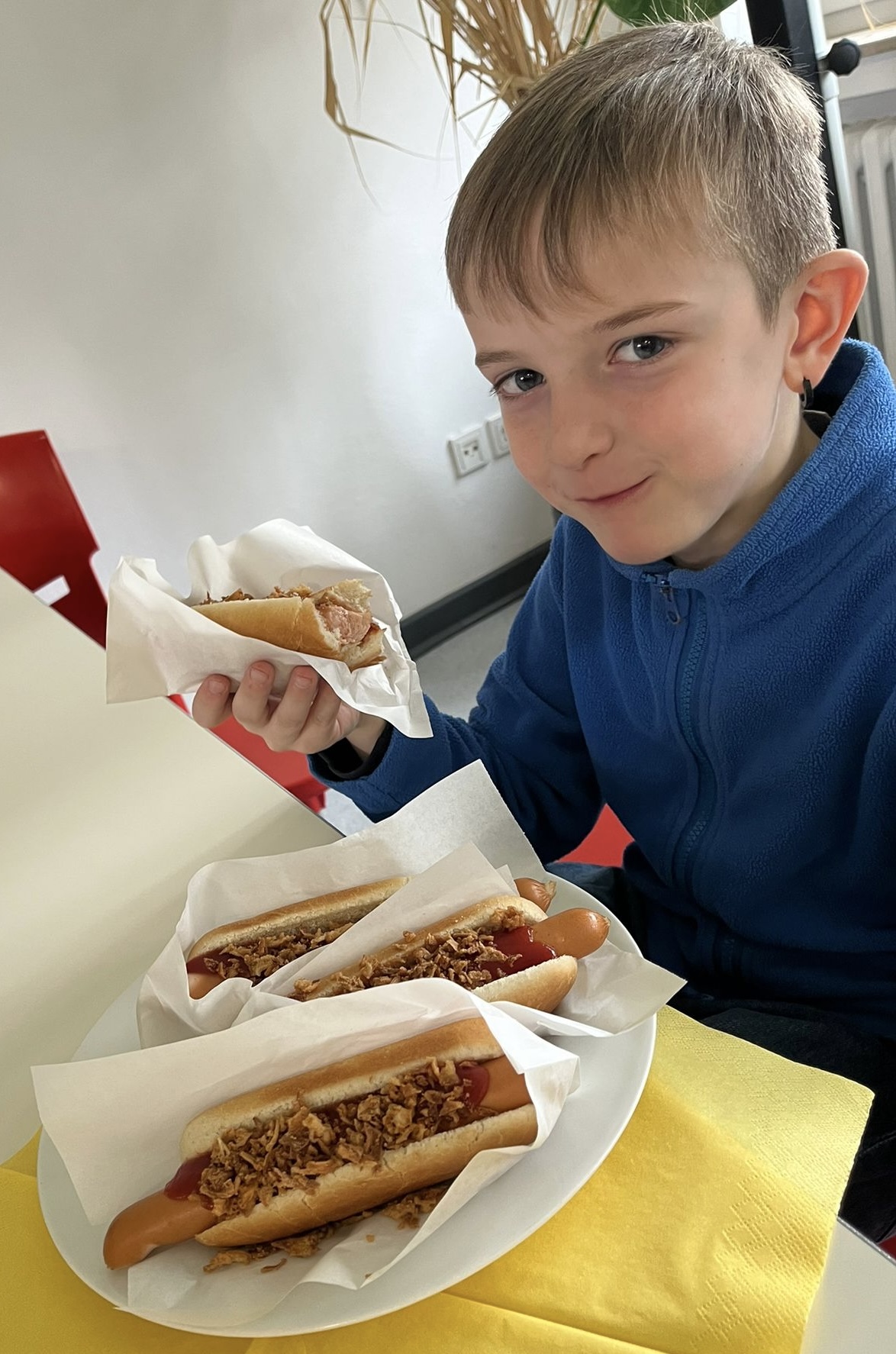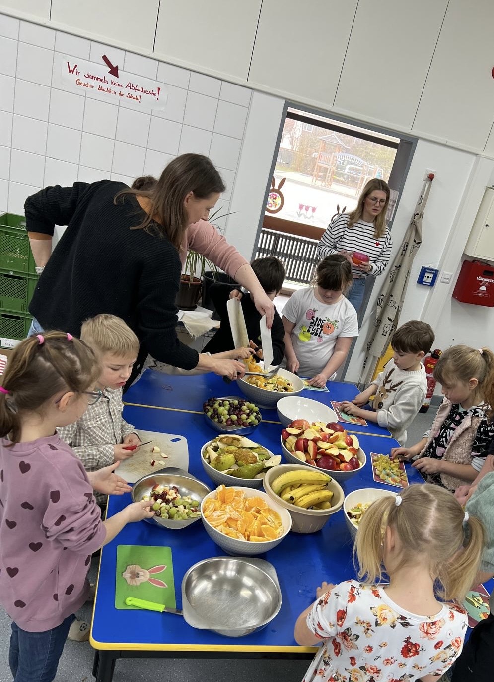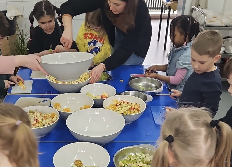 Am letzten Tag vor den Osterferien fand unser allseits bekanntes und tradtitionelles Fastenessen statt. Die Erstklässler haben unter Anleitung von einigen Eltern bei der Herstellung eines Obstsalates geholfen, hierbei wurde fleißig geschält und geschnibbelt. Zudem gab es die Möglichkeit Hotdogs zu kaufen, welche heiß begeht waren beim Großteil der Kinder.