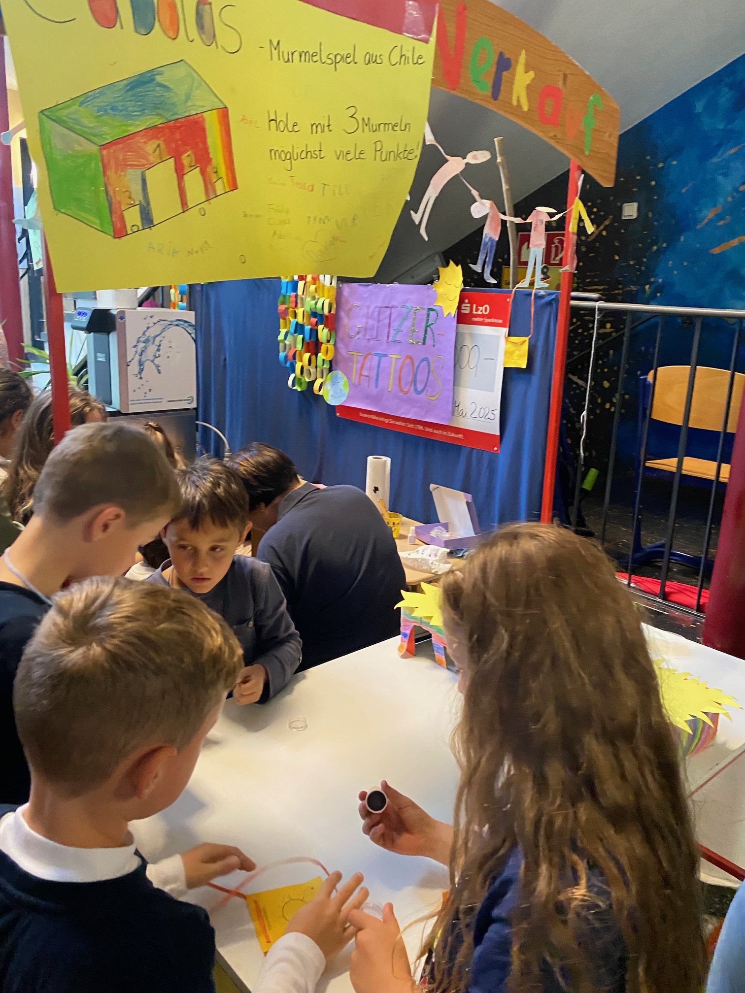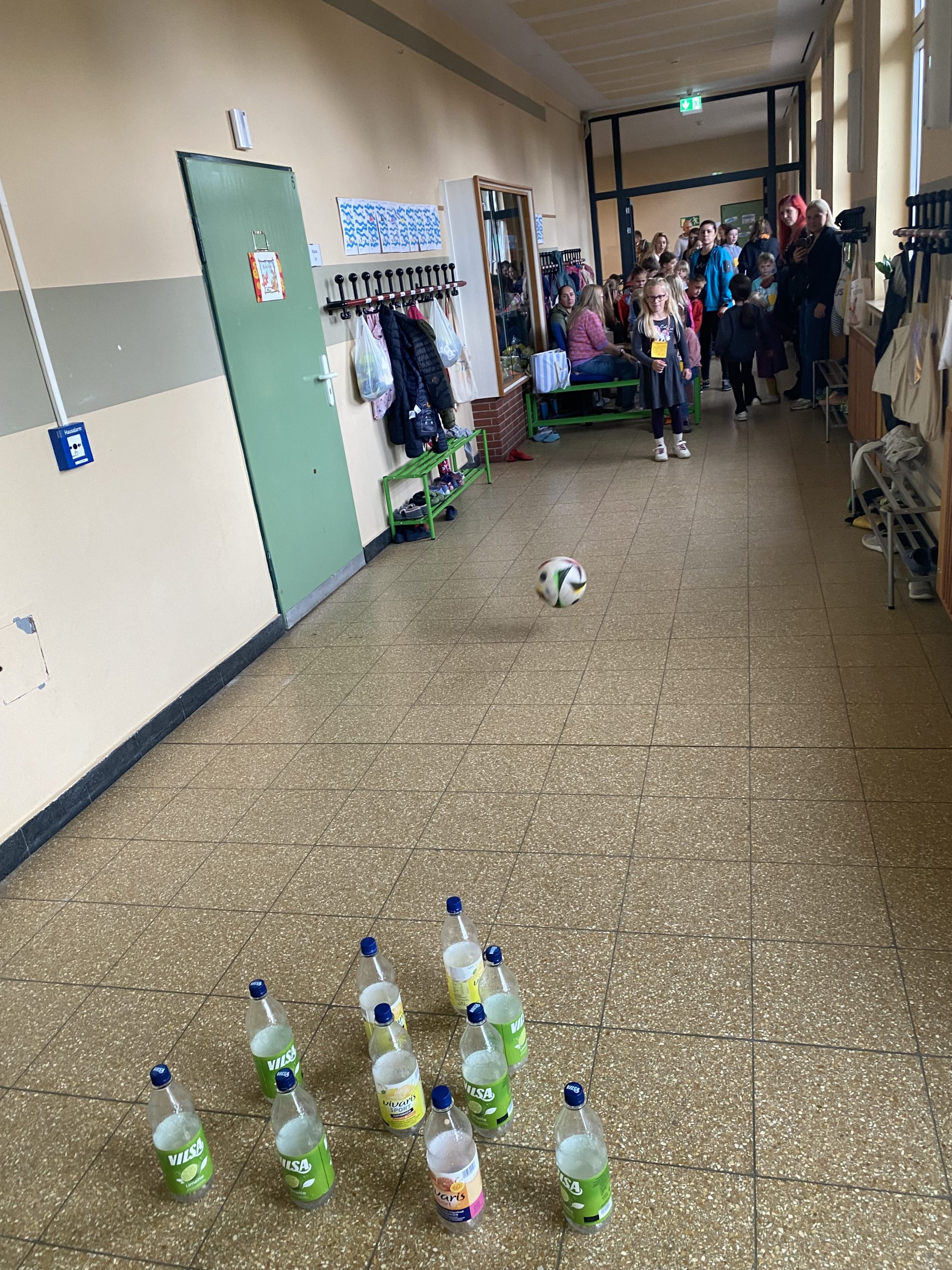 Dieser kleine Umschwung hinderte die Besucher und Schüler jedoch nicht an der erfolgreichen Bewältigung der acht Stationen. Es gab Besen-Slalom, einen heißen Draht, Turmbau, ein Murmelspiel, Entenangeln, Dosenwerfen und noch vieles mehr. Ein Flaggenspiel sowie eine Schätzaufgabe regten die Kinder zum weiteren Rätseln und Spielen ein.
